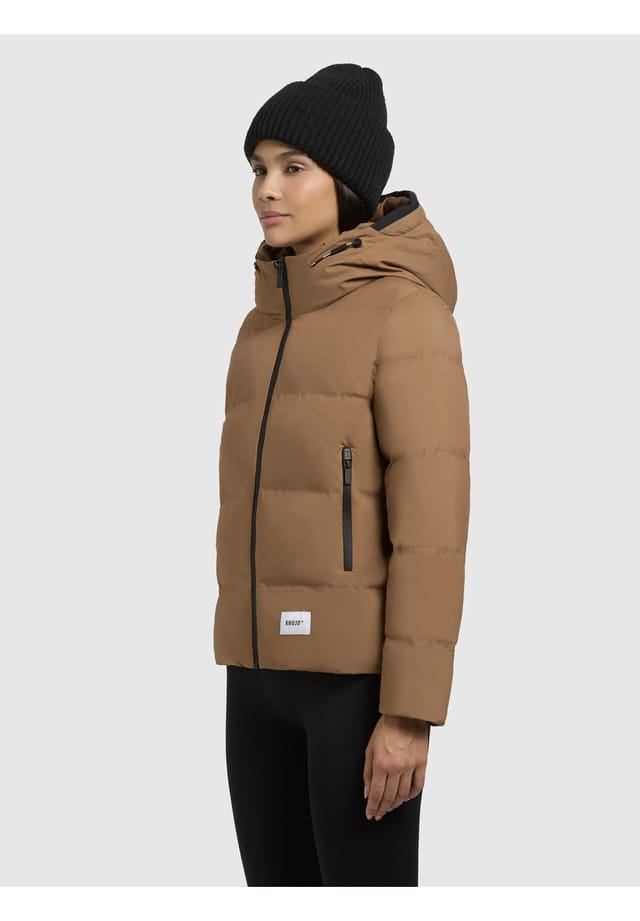 Описание товара: ВНЕШНИЙ ВИД: Эта модная зимняя стеганая куртка впечатляет своим городским силуэтом и чистым современным дизайном. Высокий воротник и большой капюшон придают ей современный вид, идеально подходящий для холодных дней в городе. МАТЕРИАЛ: Прочные, но пушистые материалы обеспечивают высокий уровень комфорта. Водоотталкивающий и ветрозащитный внешний материал надежно защищает от непогоды, а гладкая внутренняя подкладка обеспечивает приятное тепло. ПОСАДКА: Эта стеганая куртка для активного отдыха имеет прямой, удобный крой с завязками на подоле. Длина до бедер идеально подходит для повседневного использования, обеспечивая достаточную защиту и свободу движений. ДЕТАЛИ: Боковые карманы с водонепроницаемыми молниями, карман на рукаве и внутренний нагрудный карман обеспечивают практичное место для хранения вещей. Регулируемый капюшон и высокий воротник с подкладкой защищают от холода и ветра, обеспечивая дополнительную защиту в зимнюю погоду. Идеально подходит для холодных дней, эта куртка предлагает идеальную функциональность благодаря своей водонепроницаемой конструкции и практичному месту для хранения вещей. Теплый капюшон и современный крой делают ее идеальным выбором для осени и зимы. Женская зимняя стеганая куртка от khujo. Прямой покрой, длина до бедер. Большой, теплый капюшон с эластичными завязками. Мягкая, гладкая внутренняя подкладка. Водонепроницаемая, высоко застегивающаяся молния спереди. Эластичные внутренние манжеты на рукавах. 2 боковых кармана с водонепроницаемыми молниями. 1 внутренний нагрудный карман на молнии. 1 небольшой карман на рукаве на молнии с левой стороны. Высоко застегивающийся воротник обеспечивает идеальную защиту от ветра и холода. Ручная стирка.