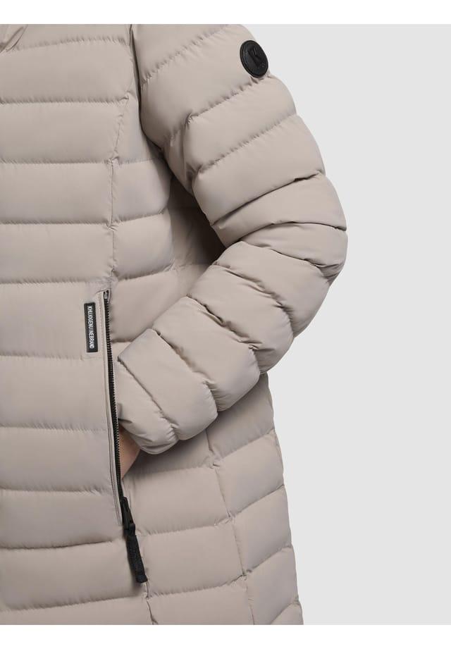 Описание товара: ВНЕШНИЙ ВИД: Стильная вещь, необходимая для холодных дней. Благодаря узкой простежке это женское зимнее пальто добавит элегантности любому наряду. Большой капюшон дополняет современный образ и обеспечивает дополнительное тепло. МАТЕРИАЛ: Благодаря прочному материалу пальто обеспечивает исключительный комфорт. Водонепроницаемый и ветрозащитный внешний материал надежно защищает от сырости и холода, а блестящая серебристая подкладка отражает тепло тела и обеспечивает дополнительную теплоизоляцию. ПОСАДКА: Приталенный крой подчеркивает женственный силуэт и обеспечивает удобную посадку. Пальто длиной до колена обеспечивает идеальную защиту от холода. Регулируемый шнурок в капюшоне позволяет подогнать его по фигуре. ДЕТАЛИ: Большой капюшон на подкладке и высокий воротник обеспечивают дополнительную защиту от ветра и непогоды. Пальто имеет практичную двухстороннюю молнию, которая гарантирует свободу движений во время ходьбы. Пальто идеально подходит для зимы, согревая вас и надежно защищая от неблагоприятных погодных условий. Современная женская зимняя стеганая куртка от уличного бренда khujo. Большой капюшон с подкладкой и эластичным шнурком. Водо- и ветронепроницаемый наружный материал. Мягкая, гладкая внутренняя подкладка в блестящем серебристом дизайне отражает тепло тела. Практичная двухсторонняя молния спереди. Шнурок на талии для индивидуальной регулировки. 2 больших кармана на молнии. Высокий воротник обеспечивает идеальную защиту от ветра и холода. Деликатная стирка при 30 °C. Особенности : Материал: 100% полиэстер, подкладка: 100% нейлон, наполнитель: 100% полиэстер. Стильное зимнее стеганое пальто с высоким воротником. Блестящая серебристая светоотражающая внутренняя подкладка. Облегающий крой, регулируемая посадка благодаря шнурку. Большой капюшон с подкладкой, двухсторонняя молния. Идеально подходит для зимы, сохраняет тепло и сухость. Стиль: повседневный. Длина рукава: длинные рукава. Обозначение длины для топов: удлиненный крой.