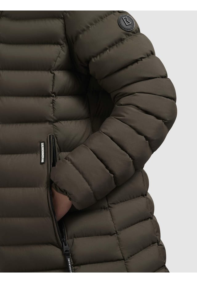 Описание товара: ВНЕШНИЙ ВИД: Стильная вещь, необходимая для холодных дней. Благодаря узкой простежке это женское зимнее пальто добавит элегантности любому наряду. Большой капюшон дополняет современный образ и обеспечивает дополнительное тепло. МАТЕРИАЛ: Благодаря прочному материалу пальто обеспечивает исключительный комфорт. Водонепроницаемый и ветрозащитный внешний материал надежно защищает от сырости и холода, а блестящая серебристая подкладка отражает тепло тела и обеспечивает дополнительную теплоизоляцию. ПОСАДКА: Приталенный крой подчеркивает женственный силуэт и обеспечивает удобную посадку. Пальто длиной до колена обеспечивает идеальную защиту от холода. Регулируемый шнурок в капюшоне позволяет подогнать его по фигуре. ДЕТАЛИ: Большой капюшон на подкладке и высокий воротник обеспечивают дополнительную защиту от ветра и непогоды. Пальто имеет практичную двухстороннюю молнию, которая гарантирует свободу движений во время ходьбы. Пальто идеально подходит для зимы, согревая вас и надежно защищая от неблагоприятных погодных условий. Современная женская зимняя стеганая куртка от уличного бренда khujo. Большой капюшон с подкладкой и эластичным шнурком. Водо- и ветронепроницаемый наружный материал. Мягкая, гладкая внутренняя подкладка в блестящем серебристом дизайне отражает тепло тела. Практичная двухсторонняя молния спереди. Шнурок на талии для индивидуальной регулировки. 2 больших кармана на молнии. Высокий воротник обеспечивает идеальную защиту от ветра и холода. Деликатная стирка при 30 °C. Особенности : Материал: 100% полиэстер, подкладка: 100% нейлон, наполнитель: 100% полиэстер. Стильное зимнее стеганое пальто с высоким воротником. Блестящая серебристая светоотражающая внутренняя подкладка. Облегающий крой, регулируемая посадка благодаря шнурку. Большой капюшон с подкладкой, двухсторонняя молния. Идеально подходит для зимы, сохраняет тепло и сухость. Стиль: повседневный. Длина рукава: длинные рукава. Обозначение длины для топов: удлиненный крой.