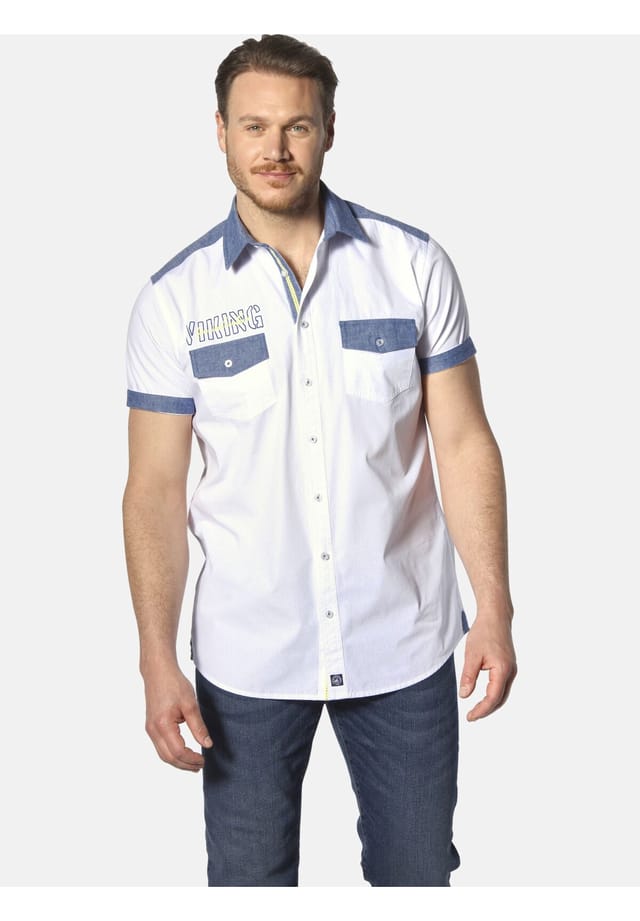 Описание товара: JAN VANDERSTORM — ваш эксперт в мужской моде больших размеров. Рубашка с короткими рукавами HERKKO идеально подходит для расслабленных моментов и просто супервоздушная. Благодаря ярким контрастам на плечах, воротнике и клапанах нагрудных карманов эта рубашка действительно выделяется с точки зрения моды. Она также имеет два практичных нагрудных кармана на пуговицах, идеально подходящих для вашего смартфона и других необходимых вещей. Классический воротник Kent придает рубашке аккуратный вид, а принт на правой груди завершает повседневный дизайн. Для тех, кто ценит стильный вид и максимальный комфорт, рубашка с короткими рукавами HERKKO — идеальный выбор. Материал: 100% хлопок. Можно стирать в стиральной машине. КОЛЛЕКЦИЯ +FIT: Удобный стиль из нашей коллекции +Fit. Благодаря нашему специальному крою +Comfort этот топ спереди длиннее, поэтому его можно носить заправленным в брюки даже с ярко выраженным животом, не выскальзывая.