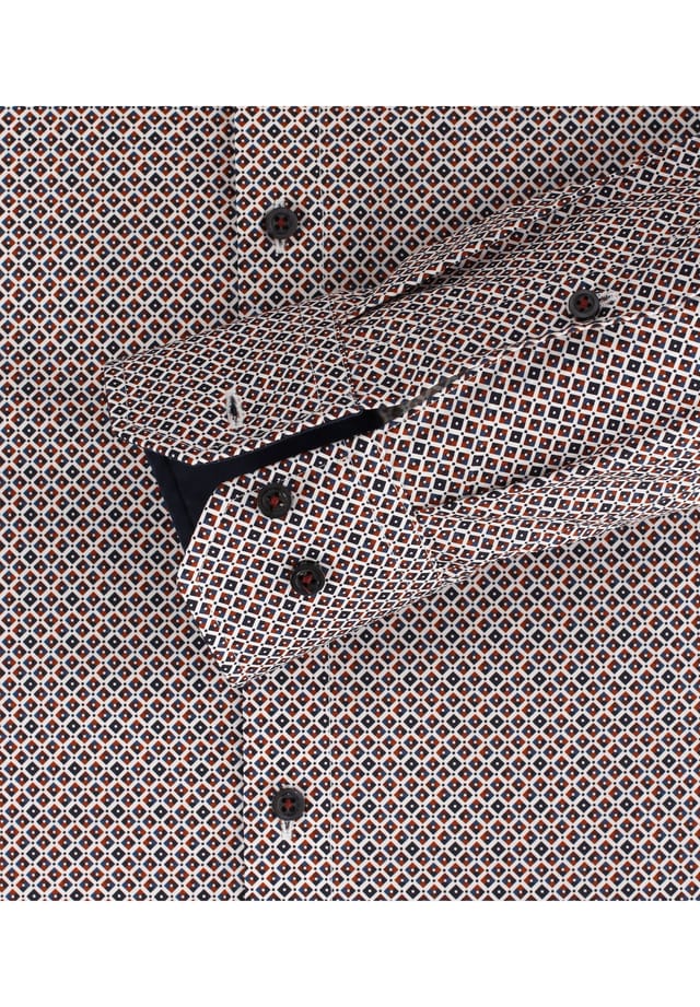 Описание товара: Эта деловая рубашка впечатляет своим высоким уровнем комфорта благодаря чистому хлопковому качеству и особенно подходит для мужчин, которые предпочитают более облегающие рубашки. Эта стильная модель отличается модным принтом и является идеальным компаньоном для мужчины, следящего за модой. Независимо от того, надета ли она с брюками или в сочетании с подобранными по цвету брюками чинос, эта рубашка гарантирует элегантный внешний вид.
