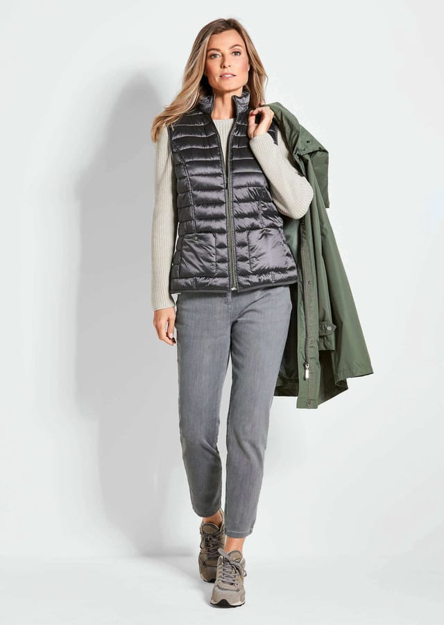 Описание товара: куртка на все времена года, которая идеально подходит для любой погоды. Сочетание куртки и съемного стеганого жилета позволяет носить эту привлекательную модель 3 в 1 разными способами. Вы можете либо застегнуть куртку с капюшоном и жилет вместе для оптимальной защиты от непогоды в холодные дни, либо носить куртку с капюшоном и жилет по отдельности — в зависимости от погоды. С высоким воротником-стойкой, съемным капюшоном и внутренним шнурком куртка также идеально подходит в качестве ветровки. Двойные карманы искусно выполнены с очень глубокими карманами-карманами. Молния закрыта ветрозащитной застежкой-кнопкой. Они элегантно украшены логотипом GOLDNER. Она имеет высококачественную окантовку и тональные репсовые ленты. Экологическая, водо- и грязеотталкивающая пропитка Bionic Finish ECO с формулой без фтора дольше сохраняет цвета и ткань как новые, быстрее сохнет материал и делает уход легким. Качество также дышащее, ветроустойчивое, прочное и оснащено защитой от ультрафиолета. Длина куртки около 90 см в размере 46, около 86 см в размере 23. Длина жилета около 66 см в размере 46, около 62 см в размере 23.
