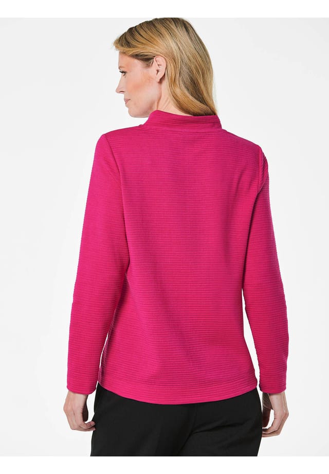 Описание товара: Толстовка с изысканным воротником-стойкой, заканчивающимся привлекательной буквой V спереди. Соответствующий шнур с металлическими концами проходит через металлические люверсы и может быть завязан в бант по желанию. Эта толстовка длиной до бедер имеет свободный крой. Трикотажная ткань с высоким содержанием вискозы и эластана обеспечивает мягкость и исключительный комфорт. Структурированная поверхность с горизонтальным ребристым рисунком особенно привлекает внимание и является стильным повседневным спутником. Длина около 66 см для размера 46, около 50 см для размера 46. 62 см в размере 50. 23.