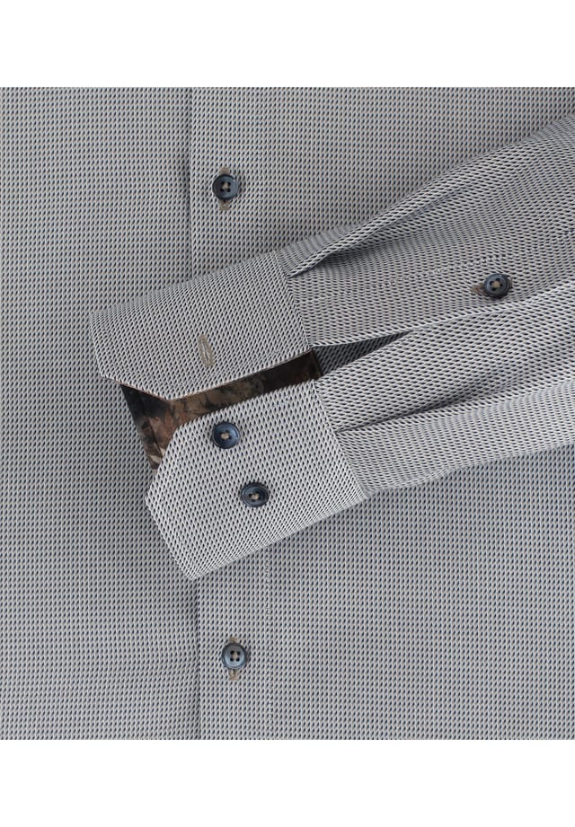 Описание товара: Для мужчин, предпочитающих более облегающие рубашки, эта рубашка станет идеальным выбором благодаря своему строгому крою. Рубашка также особенно удобна в носке благодаря своей конструкции из чистого хлопка. Модный минималистичный принт искусно подчеркивает модель. Независимо от того, надета ли она с тканевыми брюками или в сочетании с подобранными по цвету брюками чинос, эта рубашка гарантирует элегантный вид.