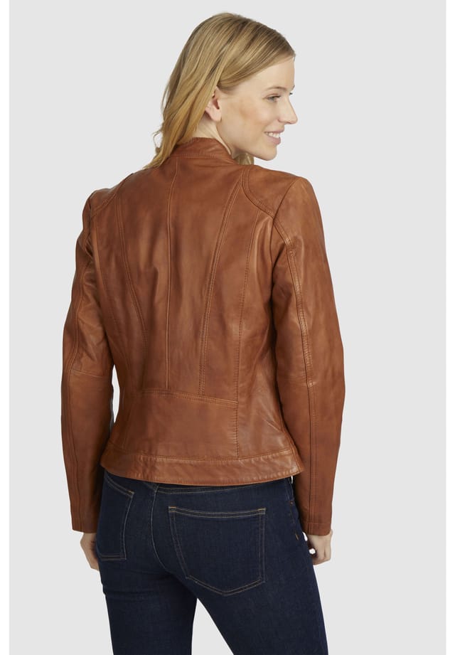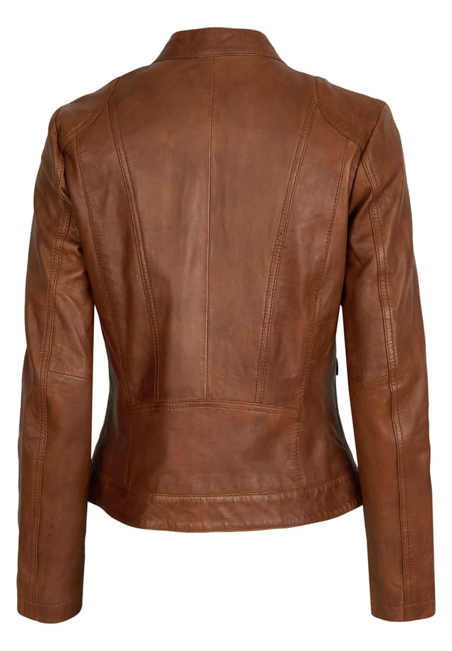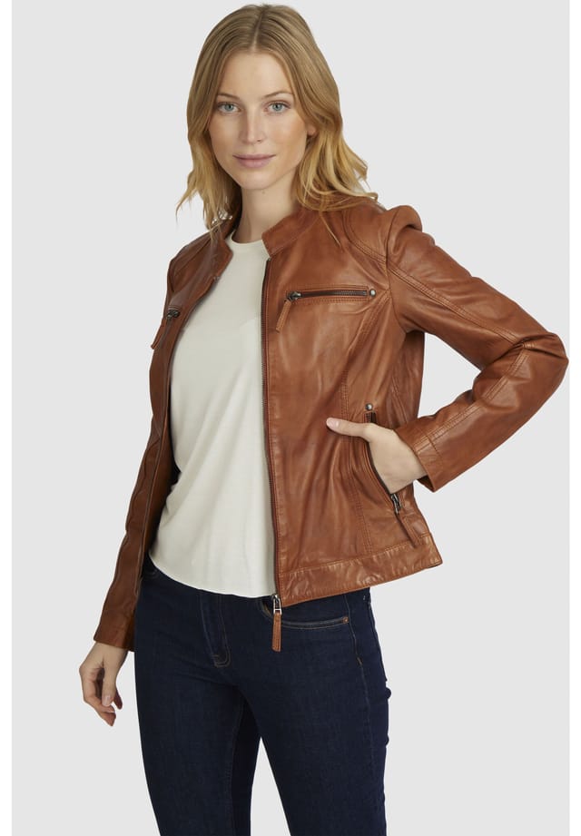 Описание товара: Эта классическая женская кожаная куртка от 7eleven, изготовленная из мягкой, выделанной растительным дублением овчины наппа, обеспечивает оптимальный комфорт благодаря удобной посадке. Воротник-стойка придает дизайну классический вид, а нагрудные карманы и окантовка на боковых карманах добавляют модные акценты. Универсальная кожаная куртка на все случаи жизни. Номер модели: SEL-Milana7E