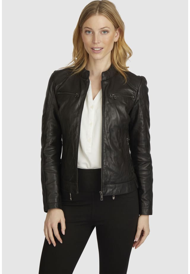 Описание товара: Эта вневременная кожаная куртка изготовлена из чистой кожи и имеет воротник-стойку и классический крой. Куртка имеет карманы на молнии и декоративную строчку, которые идеально сочетают функциональность и стиль. Эта высококачественная куртка предлагает традиционный дизайн и первоклассное мастерство для элегантного образа, который никогда не выйдет из моды. Особенности (Bullets): Модная кожаная куртка с застежками-молниями Высококачественная кожа Длинные рукава, воротник-стойка Карманы на молнии Классический крой Застежка: молния Свойства материала: мягкий Стиль: повседневный Тип воротника: воротник-стойка Вырез: круглый Длина рукава: длинные рукава Длина топа: обычная длина