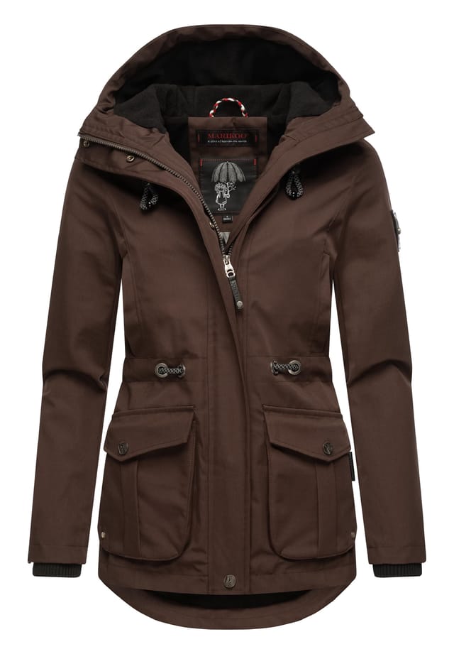 Описание товара: ВНЕШНИЙ ВИД: Легкая женская переходная куртка от Marikoo с капюшоном на подкладке и стильными светоотражающими шнурами - идеально подходит для переходного периода (весна и осень) МАТЕРИАЛ: Парка из водоотталкивающего внешнего материала, уютная мягкая флисовая внутренняя подкладка прекрасно сохраняет тепло в прохладные или дождливые дни ПОСАДКА: Короткое пальто с красиво скроенным кроем (немного длиннее сзади), форму можно отрегулировать по желанию с помощью резинки на талии, длина верха доходит до низа ДЕТАЛИ: Высоко застегивающаяся передняя молния защищает шею от ветра и холода, шнурок на капюшоне можно регулировать по ширине, светоотражающие шнуры повышают безопасность ночью Эта легкая женская куртка на подкладке идеально подходит для путешествий - множество карманов внутри и снаружи обеспечивают много места для хранения - идеально подходит для всех видов активного отдыха и развлечений! Шикарная переходная парка с капюшоном на подкладке от Marikoo Нескользящий наружный материал (водоотталкивающий) Приятно мягкая внутренняя подкладка из флиса до капюшона Индивидуальный покрой, идеальная посадка благодаря внутреннему шнурку на талии Длина до низа, немного длиннее сзади Высокая застежка-молния, скрытая планкой на кнопках, защищает от ветра и холода Уличная парка с внутренними ребристыми манжетами сохраняет тепло Стильные светоотражающие шнурки привлекают внимание Передняя молния, скрытая планкой на кнопках Большой капюшон с флисовой подкладкой 2 больших кармана с клапанами на кнопках 2 нагрудных кармана 2 внутренних кармана на молнии Кожаная нашивка с логотипом на левом рукаве Бегунок молнии из высококачественной искусственной кожи Машинная стирка при 30 °C