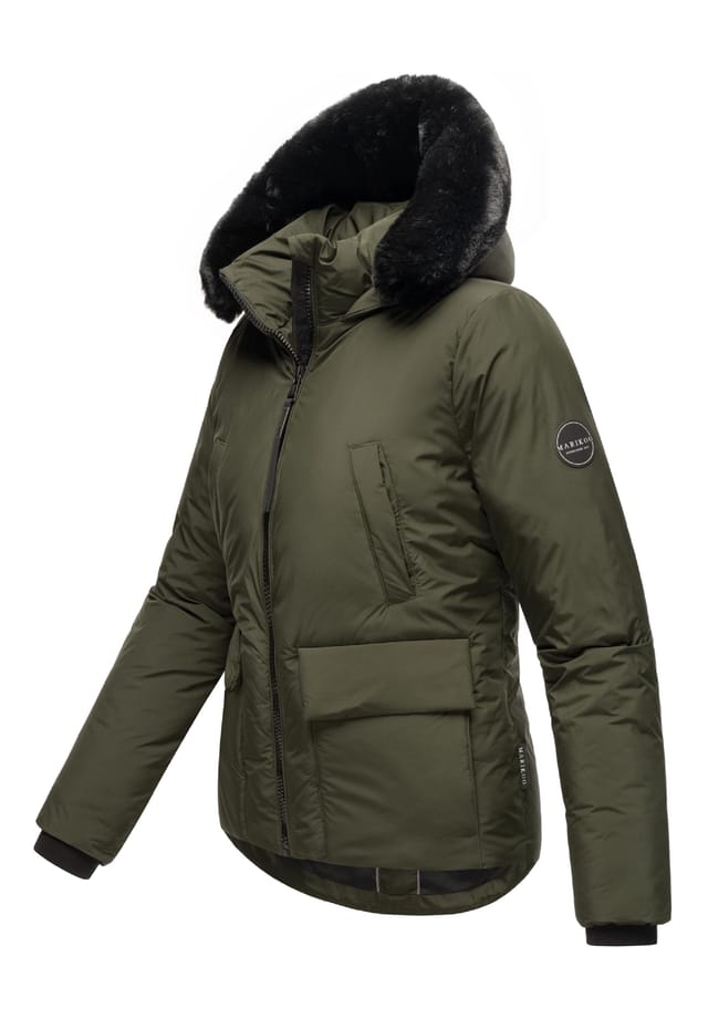 Описание товара: ВНЕШНИЙ ВИД: Эта стильная зимняя куртка впечатляет своим современным кроем и элегантным дизайном. Идеально подходит для сочетания с различными зимними нарядами, она идеально подходит для повседневного использования, а также для активного отдыха в холодное время года. ЭКОЛОГИЧНЫЙ МАТЕРИАЛ: Изготовленная из переработанного полиэстера, эта куртка обеспечивает защиту от ветра и непогоды. Водоотталкивающий материал сохраняет сухость под дождем, а уютная флисовая подкладка обеспечивает высокий уровень комфорта. ПОСАДКА: Прямой крой этой осенней куртки длиной до бедер подчеркивает фигуру и обеспечивает полную свободу движений. Высокий воротник с защитой подбородка обеспечивает дополнительную защиту и комфорт. ДЕТАЛИ: Практичные детали, такие как нагрудные карманы, внешние карманы, внутренние карманы и мягкие ребристые манжеты, делают эту куртку функциональной и удобной. Капюшон отделан съемным искусственным мехом, а светоотражающие нашивки повышают видимость. Эта уличная куртка — идеальный выбор для холодных дней. Она сочетает в себе стиль и функциональность и идеально подходит для различных видов активного отдыха зимой. Женская зимняя куртка от Marikoo Прямой крой до бедер Съемный искусственный мех на капюшоне с флисовой подкладкой Высокая застежка-молния с защитой подбородка Мягкие ребристые манжеты на рукавах Удлиненный крой сзади 2 нагрудных кармана с застежкой-кнопкой 2 боковых внешних кармана 2 внутренних кармана на молнии Уютная флисовая подкладка для высокого комфорта при ношении Светоотражающие нашивки Бережная стирка при 30 °C