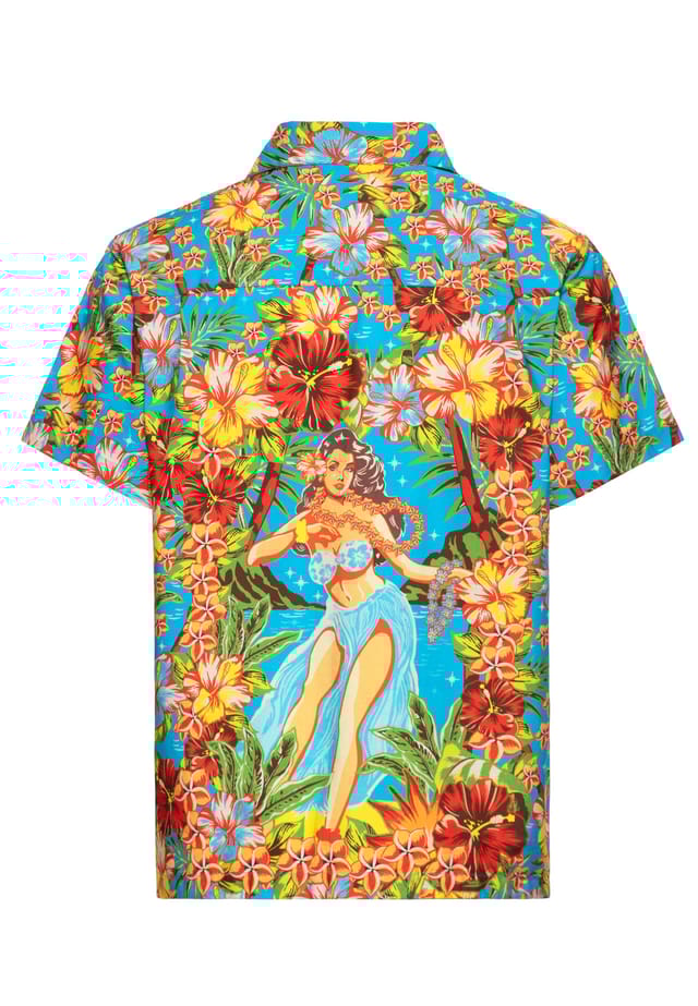 Рубашка с короткими рукавами и рисунком девушки хула на спине девушка хула King Kerosin, голубой