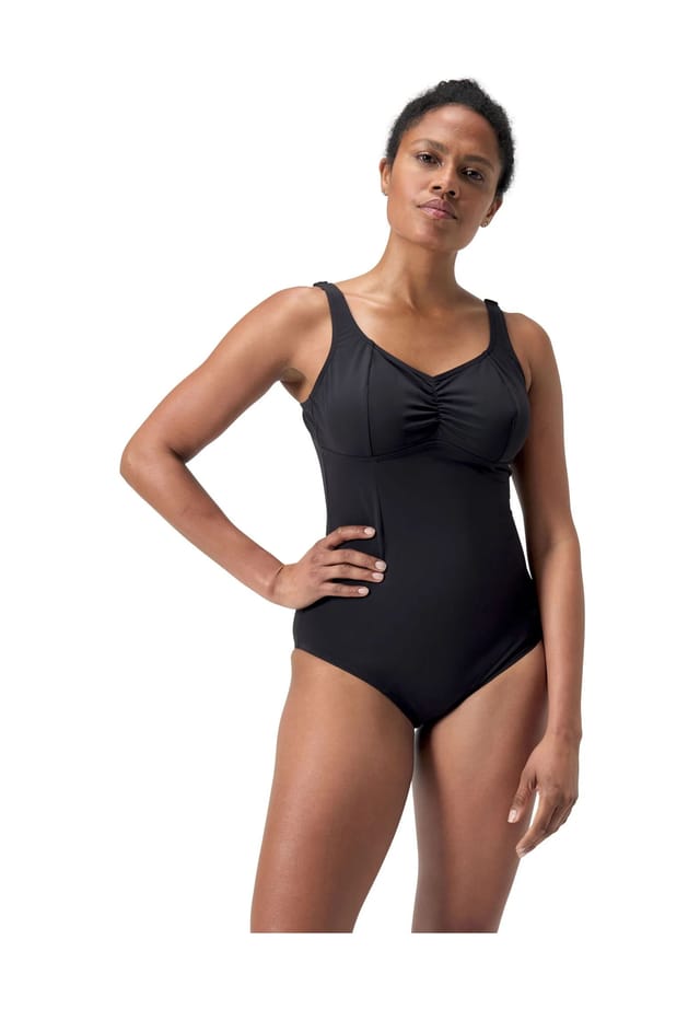 Описание товара: Улучшает, подчеркивает и дарит приятные ощущения везде. Классический элегантный купальник AquaNite черного цвета с нежными сборками и мягким V-образным вырезом подчеркивает вашу фигуру и создает красивый силуэт. Швы и регулируемые бретели обеспечивают отличную посадку во время тренировки и обеспечивают среднюю поддержку груди, в то время как моделирующая ткань по всей поверхности обеспечивает поддержку там, где она вам нужна. Мягкий SHAPE COMPREX сочетает в себе лучшие инновации в области корректирующего белья с новейшими технологиями в области купальников. LYCRA XTRA LIFE устойчива к воздействию хлора и служит вдвое дольше обычных тканей для купальников, идеально подходит для ваших регулярных тренировок. SHAPE COMPREX частично изготовлен из переработанных отходов. Нейлоновая пряжа в SHAPE COMPREX изготовлена из 100% отходов допотребительского производства, таких как остатки тканей с фабрик.