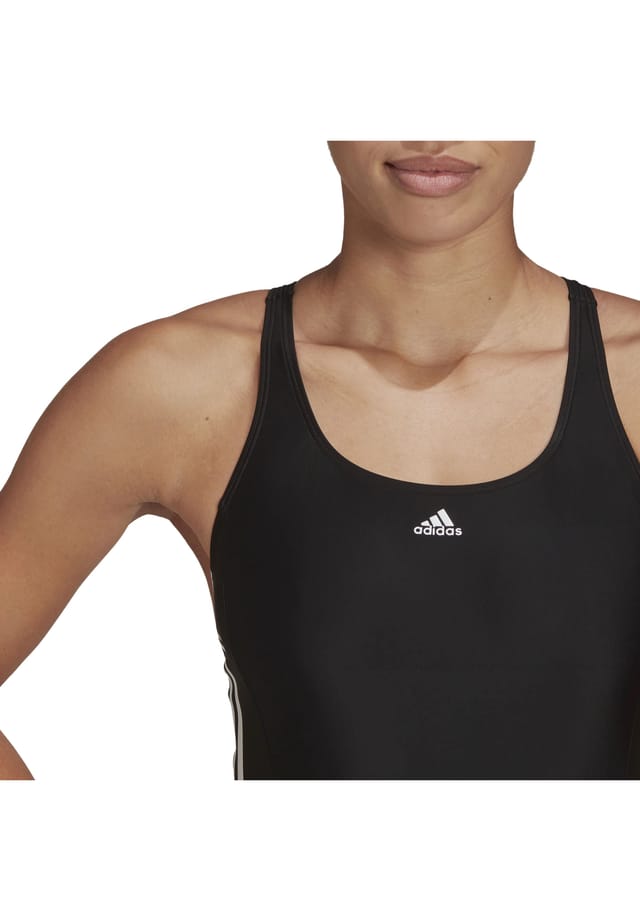 Спортивный вид купальника подчеркивается типичным для бренда стилем с тремя полосками.