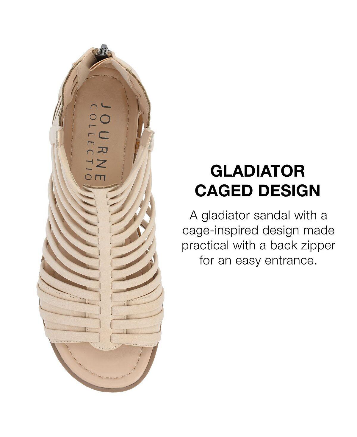 Окунитесь в веселый и необычный стиль с Delilah от Journee Collection. Этот гладиаторский дизайн выполнен из мягкой искусственной кожи со скрытой серебряной танкеткой. Застежка-молния сзади позволяет легко снимать обувь, а мягкая стелька позволяет носить ее в течение всего дня.