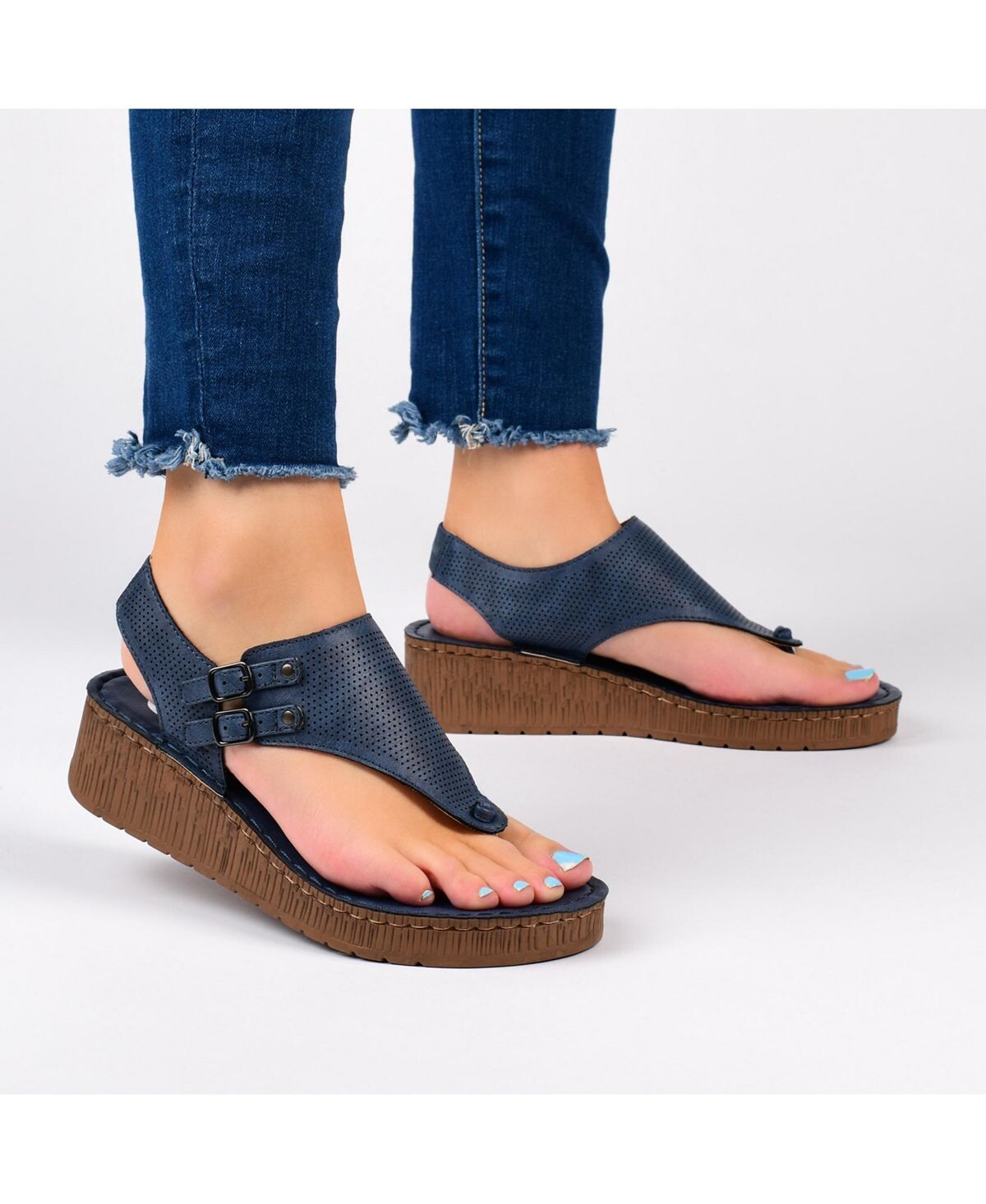 Mckell из коллекции Journee — идеальные летние сандалии. Благодаря воздушному и великолепному перфорированному материалу из искусственной кожи и уникальному узлу на носке в стиле шлепанцев эта обувь — все, что вам нужно. Модель также имеет симпатичную двойную пряжку, швы и каблук-танкетку.