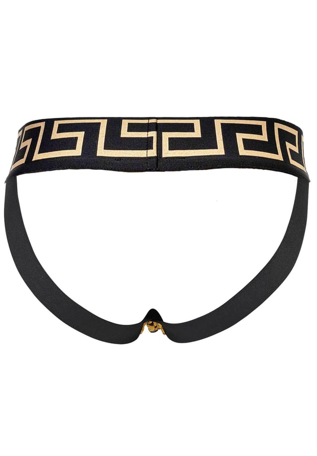 Описание товара: Элегантный мужской бандаж от VERSACE. Высококачественные трусы с узором Barocco по всей поверхности. Узор Greca и мотив Medusa на эластичном поясе.