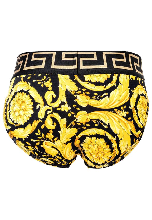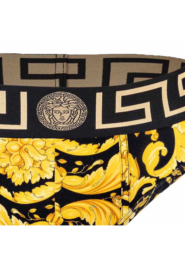 Описание товара: Элегантные мужские трусы от бренда VERSACE. Высококачественное нижнее белье с принтом Barocco по всей поверхности. Узор Greca и мотив Medusa на эластичном поясе.