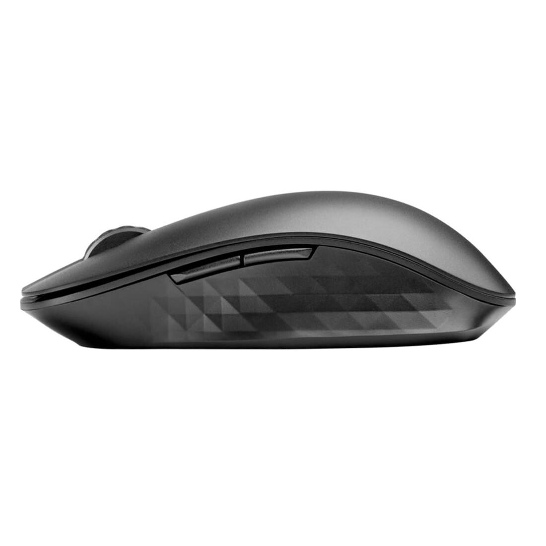 Мышь беспроводная HP Bluetooth Travel Mouse представлена в лаконичном черном корпусе. В отличие от большинства простых устройств для работы модель оснащена пятью кнопками. Среди них есть боковые и программируемые, а также удобный скролл (колесико для прокрутки).