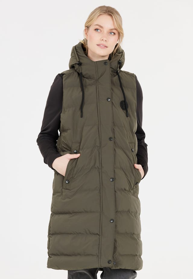 Описание товара: Стеганые куртки — не единственная суперпопулярная вещь этой осенью и зимой; стеганые жилеты также производят большой фурор — как эта классическая модель от WEATHER REPORT для женщин. Она идеально подходит для холодных дней, потому что благодаря своему длинному крою она приятно согревает не только верхнюю часть тела, но и бедра. Мягкий воротник-стойка доходит до подбородка, а практичный капюшон можно идеально отрегулировать по размеру головы с помощью шнурка — так что у холодной, сырой погоды нет никаких шансов. Дышащий стеганый жилет имеет классическую молнию спереди и застегивается на планку с пуговицами — оба эти фактора сохраняют тепло оптимально близко к телу и обеспечивают уютный комфорт. При немного более высоких температурах эта модель отлично подходит для ношения на улице; При минусовых температурах это уютный компаньон в помещении, в котором вам захочется просто закутаться.