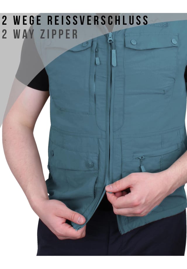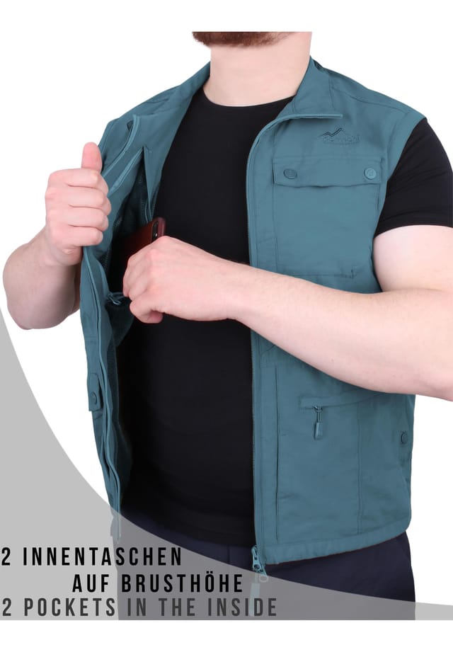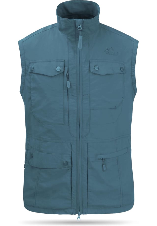 Особенности (Bullets): Легкий мужской жилет для активного отдыха с 9 карманами