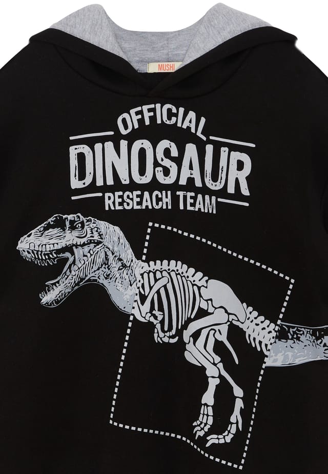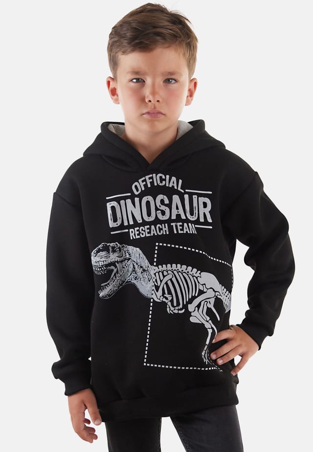 Описание товара: Толстовка из плотной зимней ткани. С капюшоном и внутренней подкладкой. Принт в виде динозавра спереди. Вся продукция Denokids производится с учетом безопасности детей.