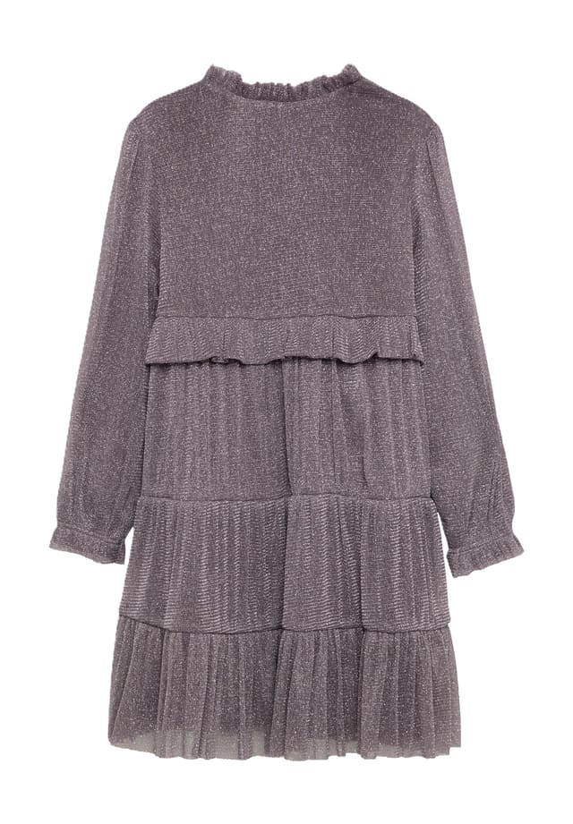 Описание товара: Воротник с оборками и расклешенный фасон придают девичье очарование. Благодаря мягкой подкладке платье приятно на ощупь. Идеально подходит для дней рождения или семейных праздников — ваш ребенок привлечет всеобщее внимание. Особенности : Длина до колена гарантирует воздушность и непринужденность ношения Расклешенный крой обеспечивает очаровательный вид и свободу движений Переливающийся дизайн добавляет привлекательности и модного штриха Материал: Сетка Аппликации: Оборки Стиль: Повседневный Покрой: Прямой Длина: До колена Вырез: Круглый Длина рукава: Длинный рукав