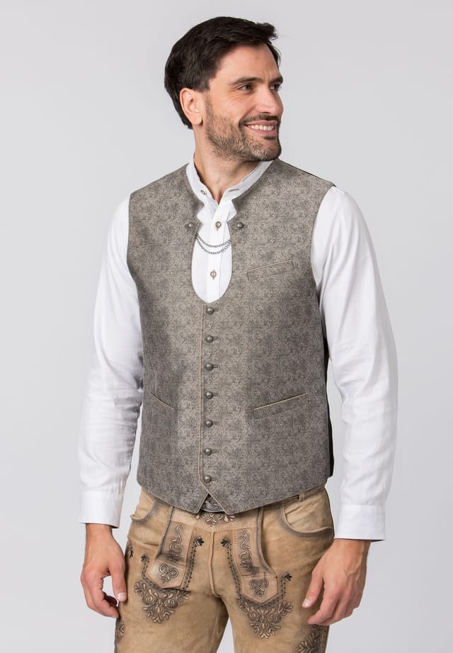 Описание товара: Традиционный жилет Tino от Stockerpoint Classics впечатляет своим классическим кроем и элегантными деталями. Тонкая жаккардовая ткань элегантного серо-коричневого цвета придает жилету стильный и традиционный вид. Вырез Miesbach с декоративной цепочкой подчеркивает аутентичный традиционный стиль и делает жилет идеальным компаньоном для праздничных случаев. Рельефные пуговицы-шарики из старинного серебра добавляют дополнительные акценты и идеально завершают дизайн. Задняя панель оснащена регулируемым ремешком для обеспечения идеальной посадки. Практичный внутренний карман обеспечивает дополнительное место для хранения. Независимо от того, надевается ли он с классическими кожаными брюками или в современном сочетании с джинсами, этот жилет станет универсальной вещью, которая просто необходима любителям традиционных костюмов, следящим за стилем.
