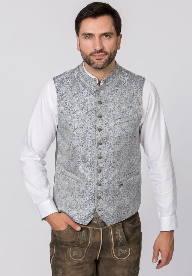 Описание товара: Традиционный жилет Ramiro от Stockerpoint Classics впечатляет своим традиционным кроем и элегантными деталями. Высококачественная жаккардовая ткань придает жилету стильный и праздничный вид. Воротник-стойка подчеркивает аутентичный традиционный стиль и делает жилет идеальным для свадеб, вечеринок и особых случаев. Рельефные пуговицы-шарики из старинного серебра добавляют элегантные акценты и гармонично завершают дизайн. Практичный внутренний карман обеспечивает дополнительное хранение мелких предметов первой необходимости. Задняя панель оснащена регулируемым ремешком для обеспечения идеальной посадки. Независимо от того, носите ли вы его в классическом варианте с кожаными брюками или в современном варианте с джинсами, жилет Ramiro — это универсальная вещь, которая просто необходима любителям традиционных костюмов, следящим за стилем.