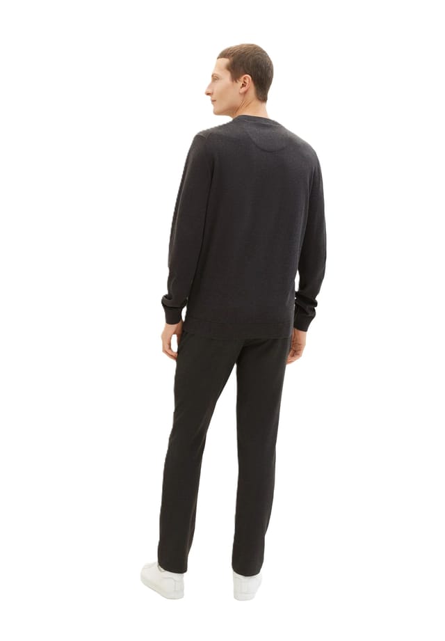 Круглый вырез свитера с ребристыми манжетами Tom Tailor, черный