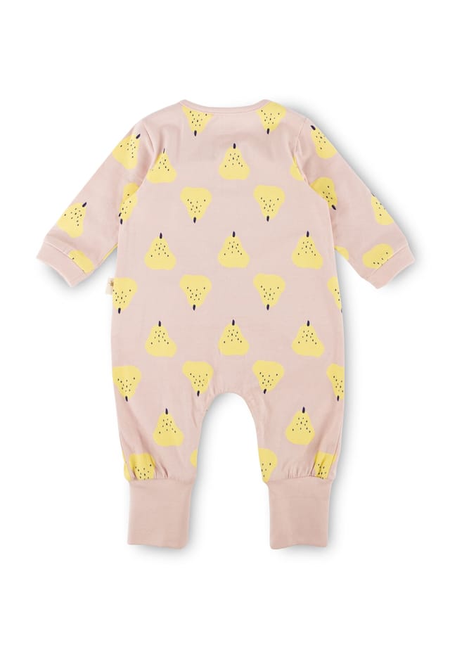 Что делает этот товар особенным: Ночной комбинезон с кнопками спереди, в промежности и на внутренней стороне ног, а также широкие ребристые манжеты на концах штанин, узкие ребристые манжеты на круглом вырезе и рукавах