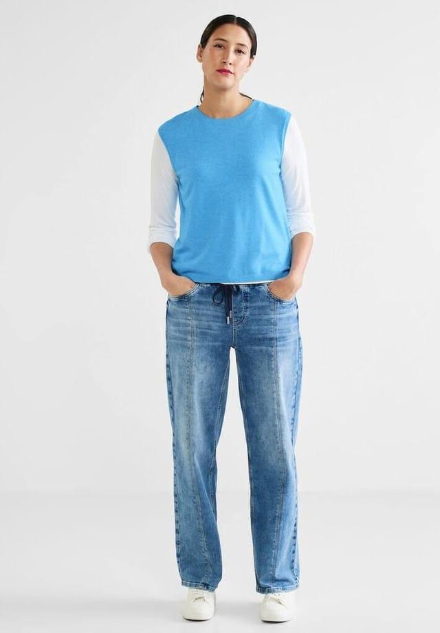 Описание товара: Женская толстовка-свитер Street One, Splash Blue Melange. Время моды! Этот женский свитер без рукавов от Street One — идеальный партнер для вашего образа. Будь то однотонный или меланжевый, свитер любит быть простым и отлично сочетается с рубашками или блузками. Но даже если носить его отдельно, свитер выглядит современно и спортивно благодаря небольшим боковым разрезам и круглой горловине. У свитера без рукавов круглый вырез и небольшие боковые разрезы для повседневного образа. Он доступен в размере 40 и имеет приблизительные размеры: длина 58 см, обхват груди 104 см, ширина подола 104 см. Свитер изготовлен из высококачественных материалов: 52% вискозы Lenzing EcoVero, 28% полиэстера, 20% нейлона. Такое сочетание обеспечивает удобную посадку и приятные ощущения. Испытайте идеальное сочетание комфорта и стиля с женской толстовкой-свитером Street One в цвете Splash Blue Melange. Закажите сейчас и вдохните новую жизнь в свой гардероб!