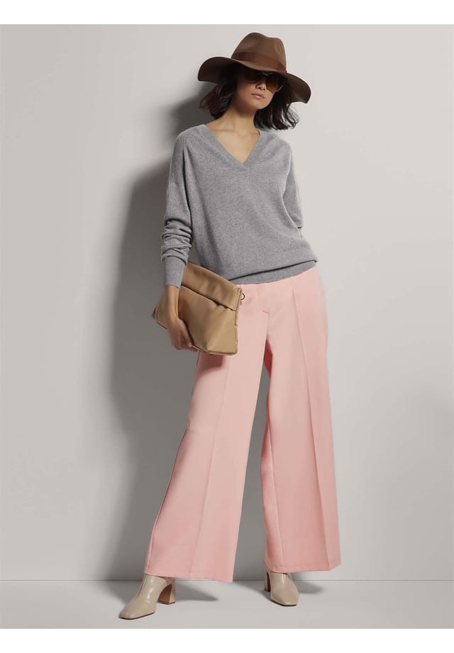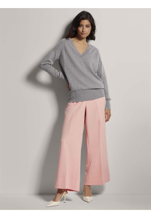 Описание товара: Первоклассный трикотаж для многих случаев. Пушистая мягкость и замечательная легкость являются секретом этого прекрасного качества кашемира — скрученный в две нити, он создает особенно элегантный узор стежка. Приятное ощущение эксклюзивного рода! Идеально подходит для изысканного базового свитера, который вы наверняка будете носить не один сезон. С тонкими ребристыми секциями на плечах свитер также добавляет модный штрих. Тщательно связанный, он имеет современную, повседневную ширину и разработан с приспущенными плечами, V-образным вырезом и ребристыми манжетами.