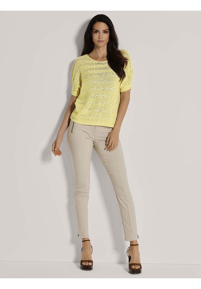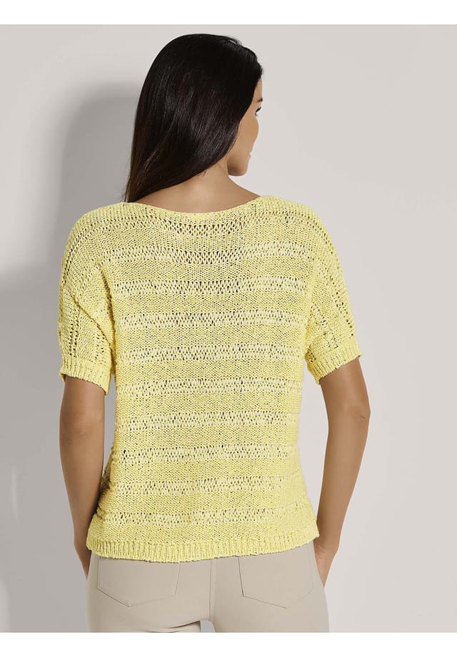 Описание товара: Трикотажный компаньон, который очаровывает своим повседневным силуэтом и нежным блеском. Свободно связанная ленточная пряжа свитера имеет нежный блеск и представлена здесь в воздушном ажурном узоре. Трикотажная мода, идеально подходящая для теплого времени года. Небрежно-современная форма этого любимого изделия удобно облегает фигуру и отличается щедрым круглым вырезом. Широко опущенные плечи дополняют образ.