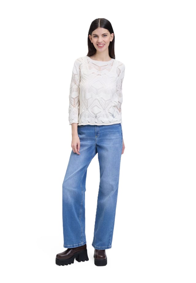 Вязаный хлопковый свитер с рукавом 3/4 Cartoon, белый