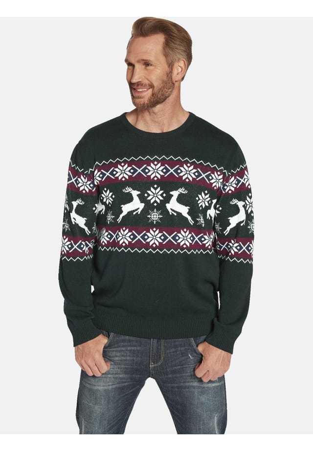 Описание товара: JAN VANDERSTORM — ваш эксперт по мужской моде больших размеров. Этот свитер подарит вам праздничное настроение: TORE имеет классический узор из ледяных звезд и оленей, который продолжается на рукавах и спине. Просто наденьте этот великолепный свитер с любимыми брюками, и вы будете в центре внимания на каждой рождественской вечеринке! 50% хлопок, 50% полиакрил. Можно стирать в стиральной машине.