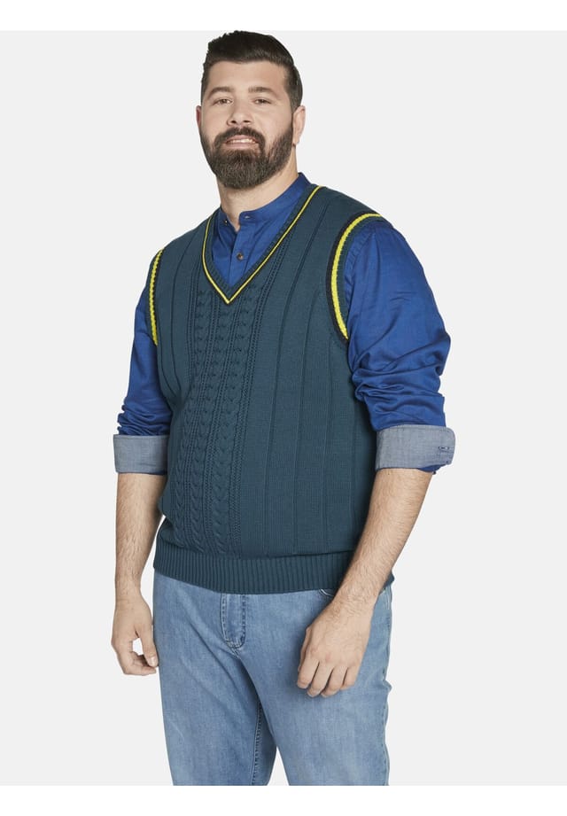 Описание товара: Charles Colby предлагает британский шик для мужской моды больших размеров. Традиционное дополнение к вашему классическому спортивному наряду? Пуловер EARL CHARLES — это ТО, ЧТО нужно вашему образу. Пуловеры в этом стиле напоминают одежду, которую носили представители разных видов спорта прошлых десятилетий. Будь то теннис или гольф: трикотажные жилеты, часто с узором косичной вязки, как тот, что используется здесь в центре, были обязательным атрибутом. V-образный вырез, подчеркнутый полосками, был такой же его частью, как и манжеты из ребристого трикотажа. Так зачем же делать иначе? Сплошная ребристая структура также визуально удлиняет одежду. Винтажный стиль во всей красе! Комфортная посадка. 50% хлопок, 50% полиакрил. Машинная стирка. ИЗДЕЛИЕ +FIT: Удобный фасон из нашей коллекции +Fit. Наш эластичный пояс со специальным кроем обеспечивает идеальную посадку под животом и предотвращает соскальзывание топа.