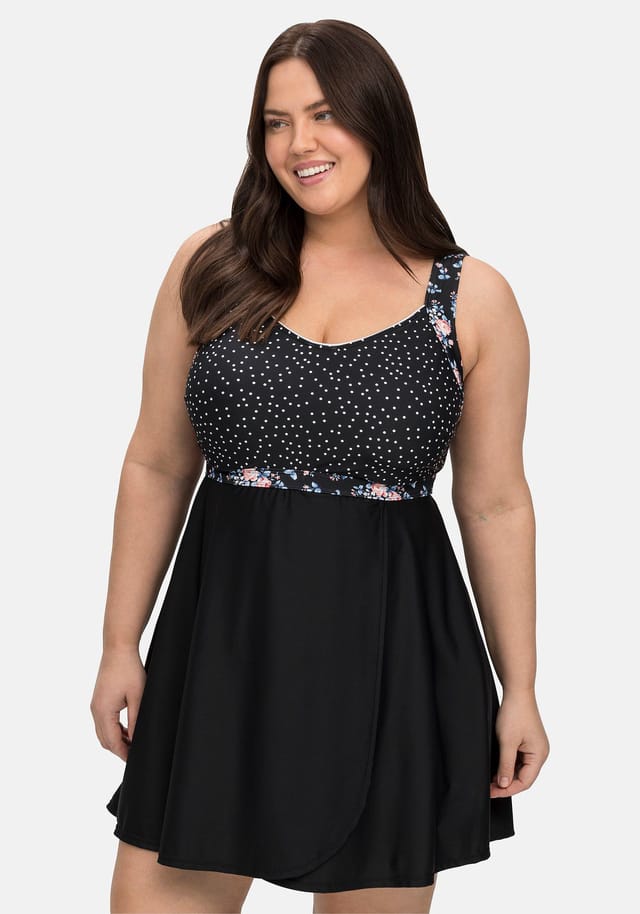 Описание товара: Этот топ танкини от sheego впечатляет сочетанием нежных точек и декоративного цветочного принта. Съемные мягкие чашечки и косточки создают красивое декольте, а также обеспечивают поддержку груди. Немного удлиненный расклешенный крой красиво падает и создает женственный силуэт.