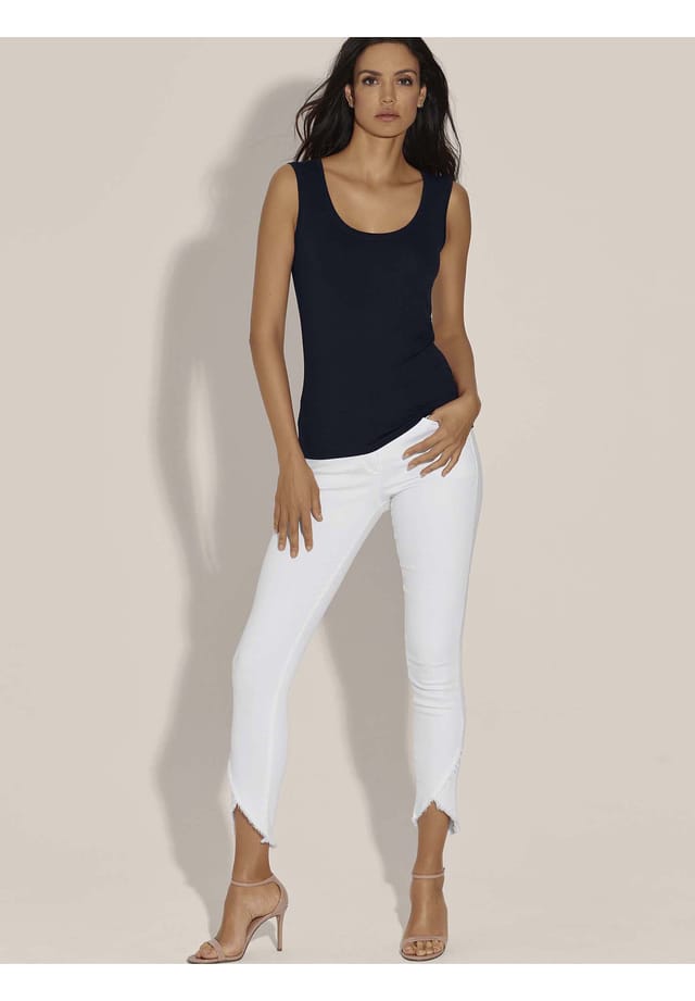 Описание товара: Эта майка-топ — идеальное нижнее белье. Сохраняющая форму, прочная вискоза-стрейч удивительно гладкая и приятная на ощупь — просто идеально подходит для утонченной базовой моды! Узкий топ с женственным круглым вырезом и широкими, удобными для стирки бретелями.