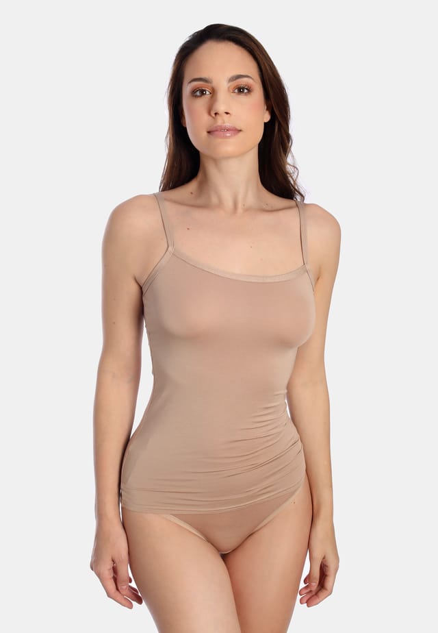 Описание товара: Топ на тонких бретельках LOVELY SKIN сочетает в себе максимальный комфорт и первоклассное качество изготовления. Мягкий, эластичный материал TENCEL особенно приятен на ощупь. Регулируемые, прошитые бретельки позволяют индивидуальную посадку, а простой вид делает топ универсальной повседневной базовой одеждой. Плоский подол обеспечивает мягкое прилегание к телу и обеспечивает всестороннее комфортное ощущение. Настоящий must-have для вашего гардероба.