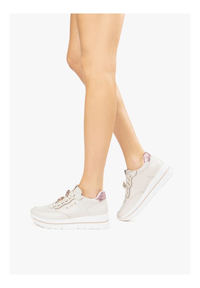 Описание товара: Создайте настоящее модное заявление с этими спортивными кроссовками от Nero Giardini! Модный кожаный дизайн с модным накладным рисунком делает обувь по-настоящему притягивающей взгляд. Мягкую кожаную стельку можно снять или заменить по мере необходимости. Благодаря шнуровке в тон кроссовки можно индивидуально отрегулировать и обеспечить оптимальную поддержку. Сверкающие камни в качестве детали придают модели изысканный вид и идеально дополняют дизайн.