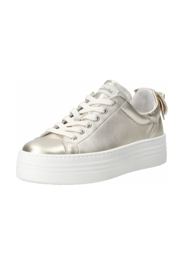 Описание товара: Эти модные кроссовки на платформе из высококачественной кожи от Nero Giardini привнесут стиль в вашу повседневную жизнь. Их минималистичный дизайн позволяет сочетать их с бесчисленными образами. Нежный декоративный бант на пятке делает обувь настоящей приманкой для глаз! Шнуровка обеспечивает идеальную посадку.