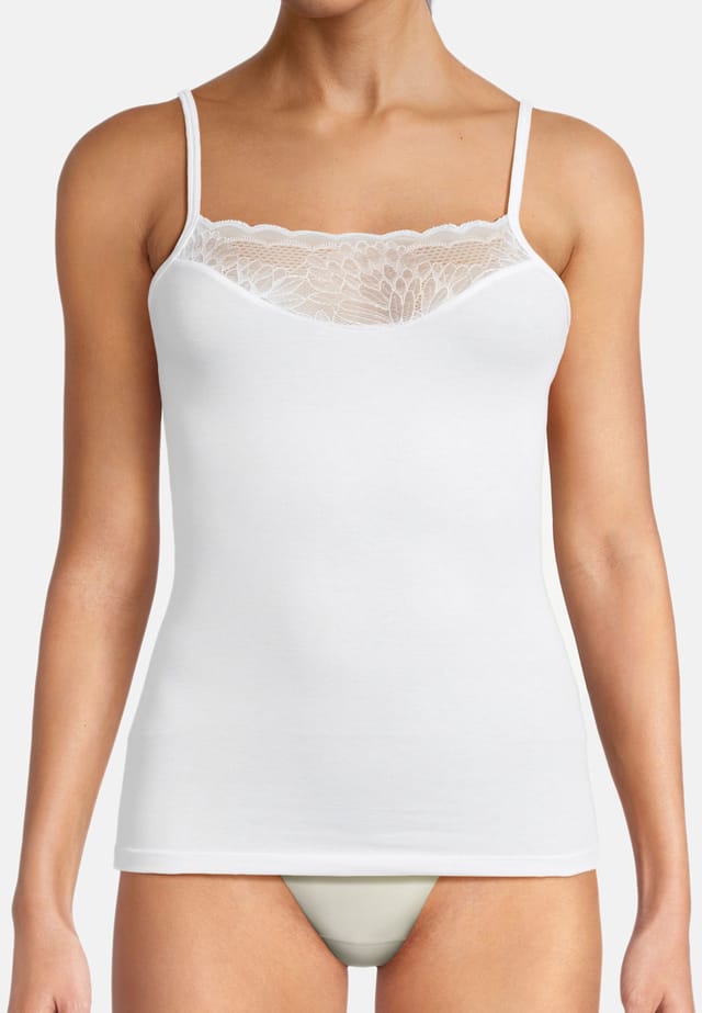 Описание товара: Этот топ на тонких бретельках сочетает в себе максимальный комфорт с элегантным внешним видом. Материал, сохраняющий форму, обеспечивает идеальную посадку и удобно прилегает к коже, а мягкая ткань обеспечивает особенно комфортное ощущение. Благодаря бесшовной отделке по бокам нет раздражающих швов, которые могли бы врезаться или защемить. Элегантная отделка высококачественным кружевом на вырезе добавляет женственный акцент и придает дизайну стильный штрих. Особенности : Отделка высококачественным кружевом Без боковых швов Максимальный комфорт Содержимое упаковки (шт.): 3 Информация о размере: Изделие идет размер в размер Вырез: Прямой Длина рукава: Без рукавов Тип бретелей: Тонкие бретели Серия: Модал