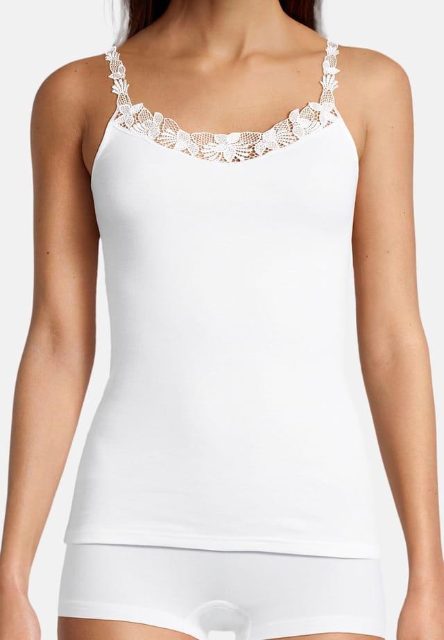 Описание товара: Женственная, стильная и удивительно удобная — эта майка с нежной кружевной отделкой на вырезе и бретелях расставляет элегантные акценты и идеально подходит для того, чтобы выглядывать из-под одежды. Она изготовлена из 100% хлопка в мягкий тонкий рубчик, плотно облегает фигуру и выигрывает за счет своего комфортного ощущения без раздражающих боковых швов. Особенности : Чистый хлопок в тонкий рубчик Кружево на вырезе и бретелях Никаких раздражающих боковых швов Содержимое упаковки (шт.): 3 Примечание к размеру: Изделие соответствует размеру Вырез: Круглый Длина рукава: Без рукавов Тип бретелей: Тонкие бретели Серия: Nadja