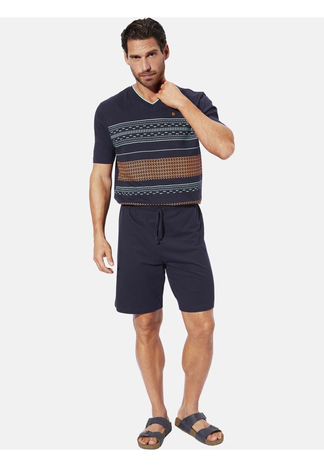 Описание товара: BABISTA вдохновляет модных мужчин своим чувством качества на протяжении 30 лет. Короткий пижамный комплект HALMIN от BABISTA гарантирует, что вы проведете ночь стильно и комфортно. Рубашка с короткими рукавами впечатляет своим элегантным дизайном V-образного выреза, дополненным графическим узором, который придает комплекту нечто особенное. Сдержанно размещенная на левой груди стильная вышивка ждет своего открытия, а короткие боковые разрезы обеспечивают большую свободу движений. Соответствующие шорты имеют минималистский дизайн, но впечатляют своей функциональностью, с эластичным поясом и практичным шнурком. Наслаждайтесь чистым отдыхом в высочайшем качестве. Материал: 100% хлопок. Машинная стирка.