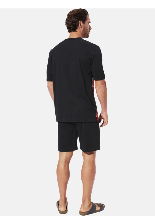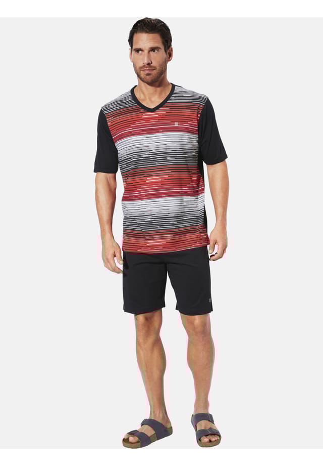 Описание товара: На протяжении 30 лет BABISTA вдохновляет мужчин, следящих за модой, своим чутьем на качество. Короткий пижамный комплект SALDUN от BABISTA для мужчин выводит стильную ночную одежду на новый уровень. Начните свой ночной сон в этом элегантном комплекте, который впечатляет своим современным дизайном. Футболка с V-образным вырезом, полосатым узором спереди и короткими боковыми разрезами сочетает в себе классический стиль с современным оттенком. Небольшая вышивка логотипа на груди добавляет изящную деталь. Простые однотонные шорты с эластичным поясом и небольшой вышивкой обещают оптимальный комфорт. Наслаждайтесь спокойными ночами в комфорте и стиле. Материал: 100% хлопок. Машинная стирка.