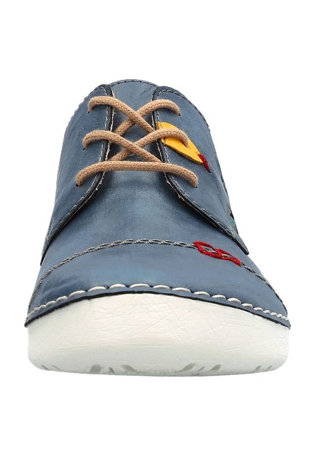 Описание товара: Легко ходить, легко жить! Эти повседневные туфли Rieker на шнуровке сланцево-голубого цвета станут вашими удобными спутниками во всех ваших путешествиях. Светлая шнуровка делает обувь идеально регулируемой. Декоративная строчка добавляет что-то особенное. Благодаря легкой, амортизирующей подошве ваши ноги наслаждаются оптимальным комфортом при ходьбе с каждым шагом. Еще одним плюсом является сверхмягкая стелька. Ощущение благополучия прилагается!