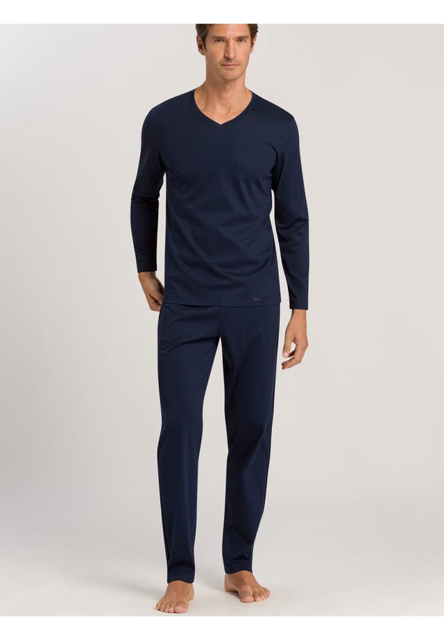 Описание товара: Этот элегантный пижамный комплект из мерсеризованного хлопка премиум-класса в высококачественной ткани интерлок обеспечивает роскошный комфорт с легким блеском. Комплект, состоящий из рубашки с длинными рукавами и длинных брюк, приятно приятен на ощупь и стильно отделан тонкими деталями окантовки и практичными карманами — идеально подходит для стильных ночей и часов отдыха дома. Особенности (Bullets): Комплект, состоящий из рубашки с длинными рукавами и длинных брюк Хлопок в ткани интерлок Мягкий и удобный Информация о размере: Изделие идет размер в размер Длина: Длинная Вырез: V-образный Длина рукава: Длинный Передние, задние и внутренние карманы: Прорезные карманы