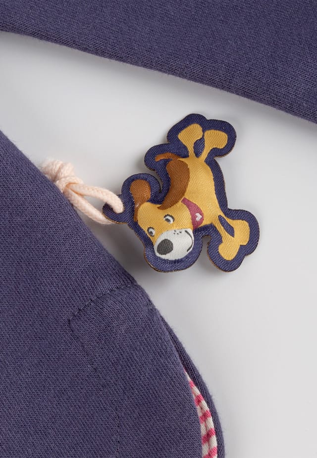 Аппликация, вышивка, принт: аппликация и вышивка далматинец, напечатанный логотип бренда sigikid