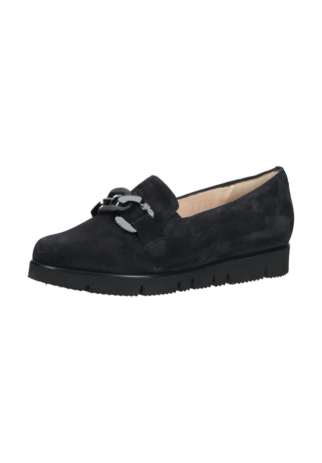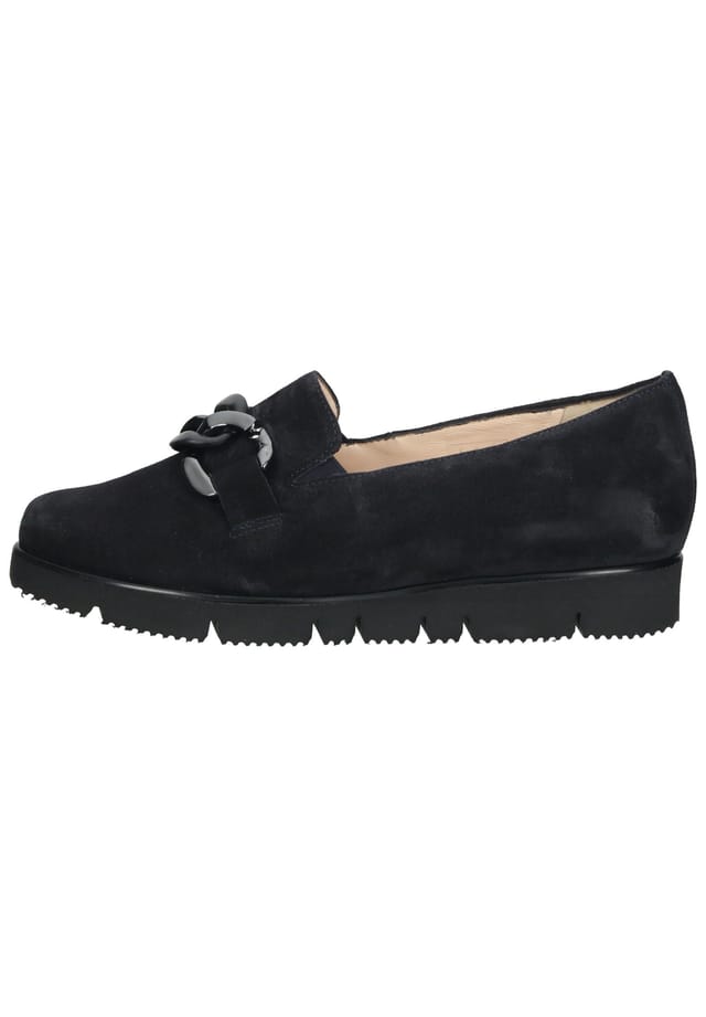 Описание товара: Эти удобные и модные туфли-слипоны от Hassia, изготовленные из высококачественной замши, можно сочетать как с повседневным нарядом для отдыха, так и с деловым образом. Эта простая обувь — настоящая универсальная вещь, а элегантная цепочка на подъеме особенно красиво привлекает внимание. Мягкая стелька покрыта кожей и может быть снята или заменена по мере необходимости. Эти туфли-слипоны — действительно идеальный повседневный компаньон!