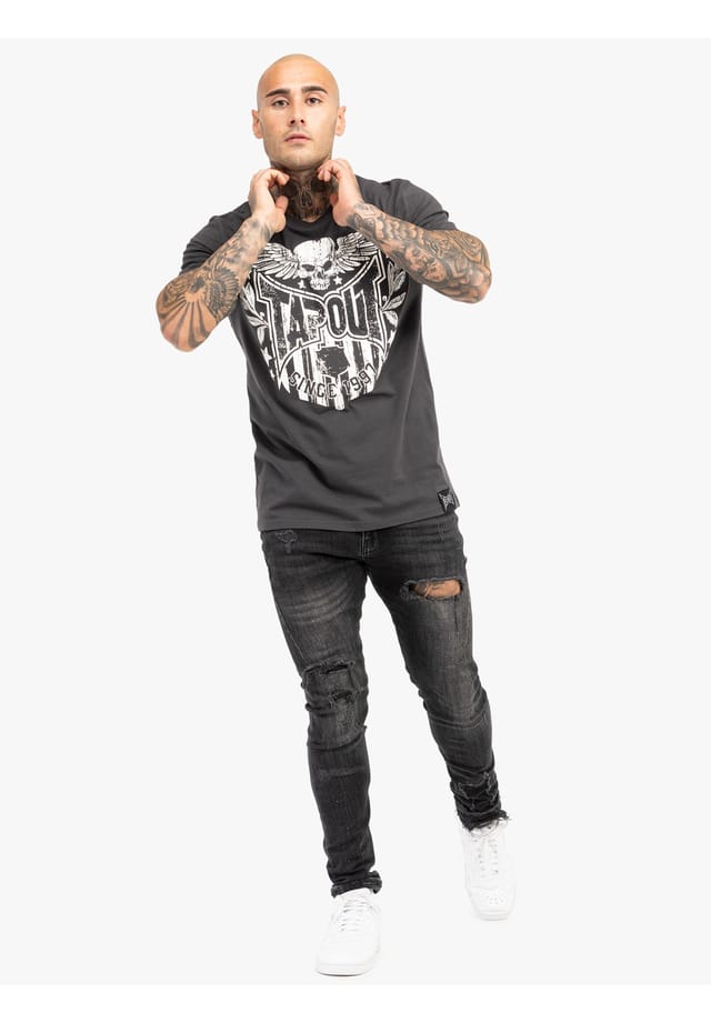 Описание товара: Эта простая футболка украшена разнообразными принтами: крупный принт украшает переднюю часть топа, а меньший принт виден на заднем плече. Оба принта имеют потертый вид. Еще одна деталь — логотип на подоле спереди. Помимо классного вида, использование высококачественного хлопка обеспечивает высокий уровень комфорта. Футболка от Tapout — ваш новый спутник для активного отдыха.