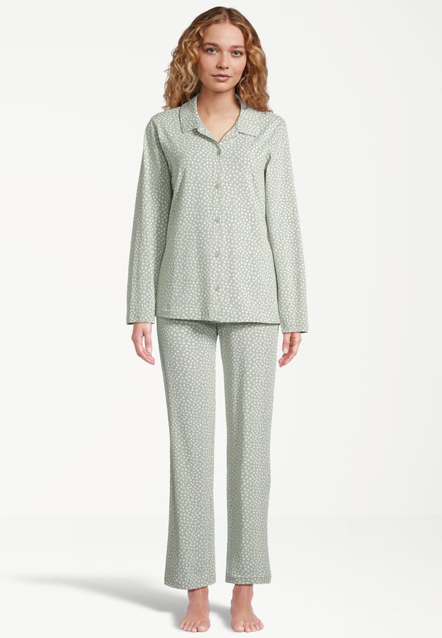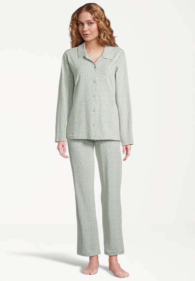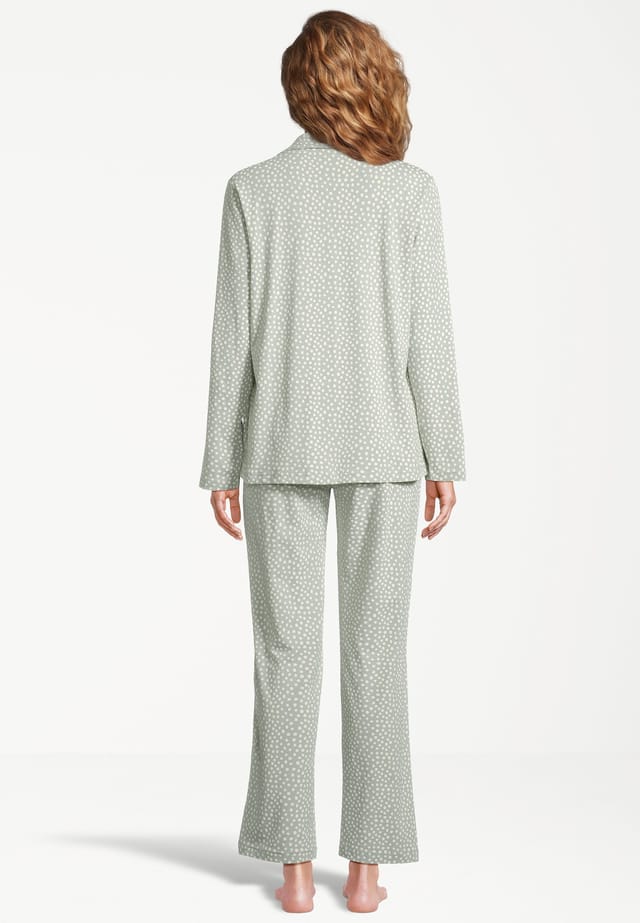Описание товара: Этот модный пижамный комплект с рисунком в горошек по всей поверхности сочетает в себе стиль и комфорт. Верх с полной планкой на пуговицах обеспечивает удобство в обращении, а брюки с карманами, эластичным поясом и галстуком обеспечивают идеальную посадку. Эластичная ткань из одинарного джерси приятно мягкая на ощупь и обеспечивает максимальный комфорт. Идеально подходит для уютных ночей и расслабленных часов. Особые характеристики : Верх с планкой на пуговицах Брюки с карманами Эластичная ткань из одинарного джерси Информация о размере: Изделие идет размер в размер Длина: Длинная Вырез: Круглая горловина Длина рукава: Длинные рукава Передние, задние и внутренние карманы: Карманы в боковых швах