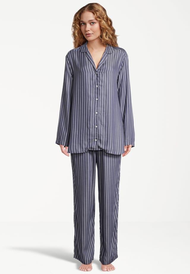 Описание товара: Эти пижамы впечатляют своей классической элегантностью и высоким уровнем комфорта. Верх с застежкой на пуговицы и брюки с карманами, эластичным поясом и завязкой на талии предлагают идеальное сочетание функциональности и стиля. Мягкая ткань обеспечивает приятное ощущение на коже и идеально дополняет удобный дизайн. Идеально подходит для расслабленных ночей и стильного отдыха. Особенности (Bullets): Верх с застежкой на пуговицы Брюки с карманами Мягкая ткань Информация о размере: Изделие идет размер в размер Длина: Длинная Вырез: V-образный Длина рукава: Длинный Передние, задние и внутренние карманы: Карманы в боковых швах
